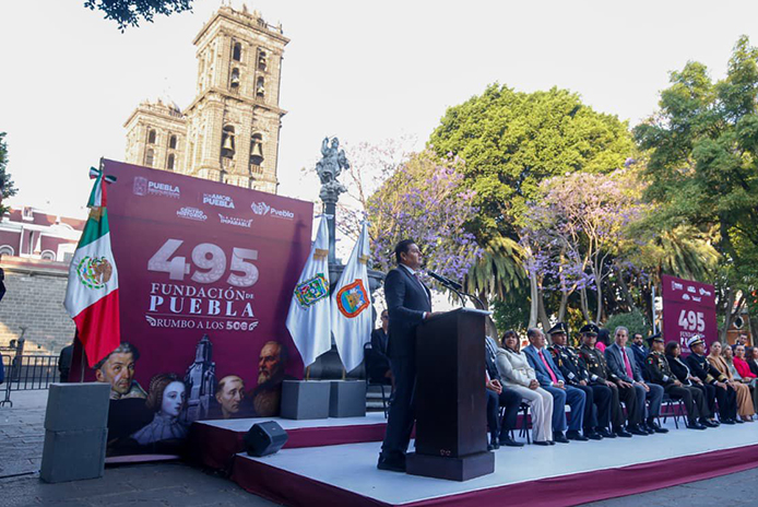 Con la participación de autoridades de los tres órdenes de gobierno, el gobernador Alejandro Armenta Mier encabezó la ceremonia cívica por el 495 aniversario de la Fundación de Puebla, donde destacó la importancia de esta fecha histórica para México y el papel de la entidad como referente de desarrollo, identidad cultural y proyección internacional, en un marco de unidad institucional y fortalecimiento de la vida pública.