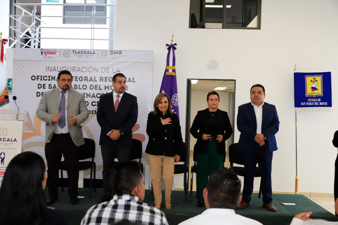La gobernadora Lorena Cuéllar Cisneros inauguró la cuarta Oficina Regional de la Coordinación del Registro Civil en San Pablo del Monte, la cual beneficiará a la población de este municipio y a la de Tenancingo, Xicohtzinco, Teolocholco, Quilehtla, Ayometla, Tetlanohcan, Mazatecochco, Acuamanala y Papalotla.