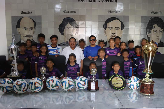 El alcalde de Amozoc Mario de la Rosa Romero hizo entrega de balones a integrantes de la Academia de Fútbol Atlético de Amozoc, quienes se han destacado por poner en alto al municipio en diversas competencias a nivel estatal.