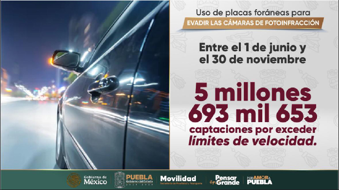 Operativo Monitor Vial para sancionar a placas foráneas, pone en marcha el Gobernador del Estado, Alejandro Armenta, ante más de 5 millones de capacitaciones de vehículos que transitan a exceso de velocidad, de los cuales, más de 4 millones corresponden a matrículas de otro estado.