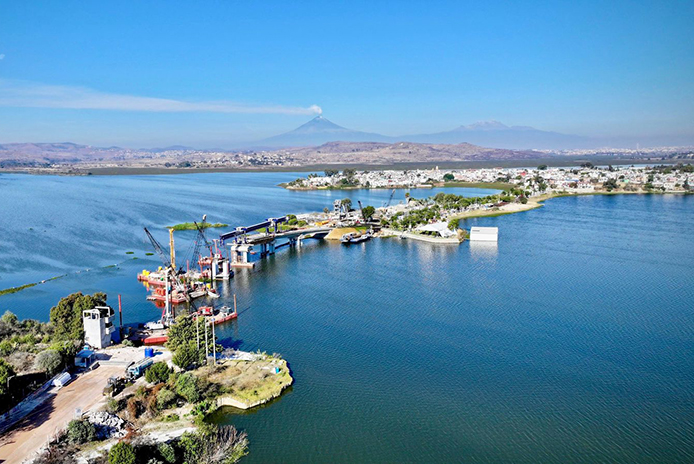 CIUDAD DE PUEBLA, Pue.- El Puente de la Transformación en el Lago de Valsequillo es una obra que se construye con procesos acuáticos y subacuáticos de alta especialización, lo que posiciona a Puebla a la vanguardia nacional en tecnología de infraestructura y garantiza una conexión segura y duradera para siete municipios de la región.