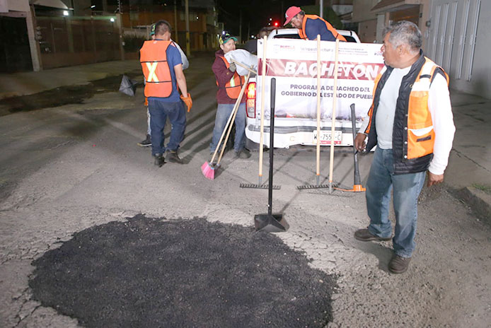 Con la firme intención de dignificar las vialidades de la capital, de atender de manera inmediata el déficit en el asfalto, y, sobre todo de evitar accidentes, el programa «Bachetón» que impulsa el gobierno estatal de Alejandro Armenta, avanza y genera resultados para las y los poblanos, con cuadrillas que operan las 24 horas del día, los siete días de la semana. “Hacer territorio, en lugar de escritorio, nos permite saber cómo estamos”.
