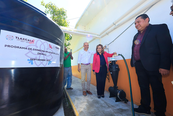 La gobernadora Lorena Cuéllar Cisneros entregó dos Sistemas de Captación de Agua de lluvia a la escuela primaria federal multigrado “Xicohténcatl” de la comunidad de Ixtlahuaca en el municipio de Contla, con una inversión estatal superior a los 222 mil pesos en beneficio de 692 habitantes.