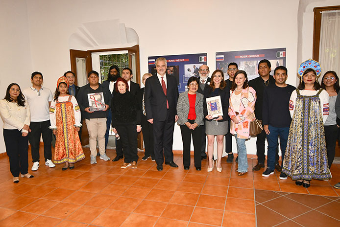 En el Museo de la Memoria Histórica Universitaria, la Rectora Lilia Cedillo inaugura exposición temporal de carteles en el marco del 135 aniversario del establecimiento de relaciones diplomáticas entre México y Rusia. La muestra estará abierta al público hasta el 8 de febrero.