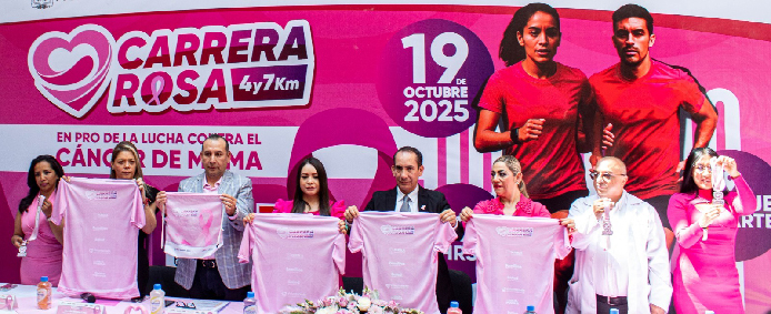 Con motivo del Día Internacional contra el Cáncer de Mama, el gobierno de Alejandro Armenta, a través de la Secretaría de Salud, anunció la Carrera Rosa 2025, que se llevará a cabo el 19 de octubre en el Parque del Arte a las 6 horas, con recorridos de 7 y 4 kilómetros.