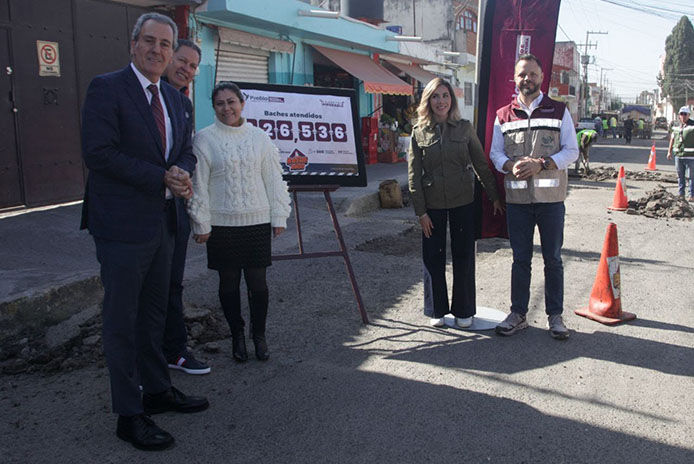Con sede en la Junta Auxiliar Ignacio Zaragoza, el edil capitalino informó que, de enero a la fecha se han tapado un total de 226 mil 536 baches en diferentes zonas de la capital, a través de labores de bacheo con mezcla asfáltica en caliente y en frio.
