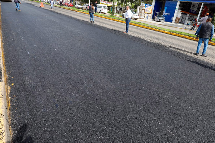 Con las cuadrillas de trabajadores y unidades del programa Módulos de Maquinaria, la dependencia avanza con el 46 por ciento en el fresado y 31 por ciento en tendido de carpeta asfáltica. Estas acciones se realizan con parte de los productos donados por Petróleos Mexicanos (PEMEX) que en total corresponden a 330 mil litros de diésel, 350 mil litros de gasolina y 3 mil 500 toneladas de cemento asfáltico.