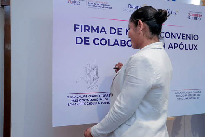 San Andrés Cholula, Puebla. – La presidenta municipal, Lupita Cuautle, encabezó la firma del Macro Convenio de Colaboración entre el Ayuntamiento de San Andrés Cholula y el Club Rotario de Cholula, representado por su presidente Israel Butrón Romero, con el objetivo de fortalecer la cooperación institucional y promover proyectos con impacto social.