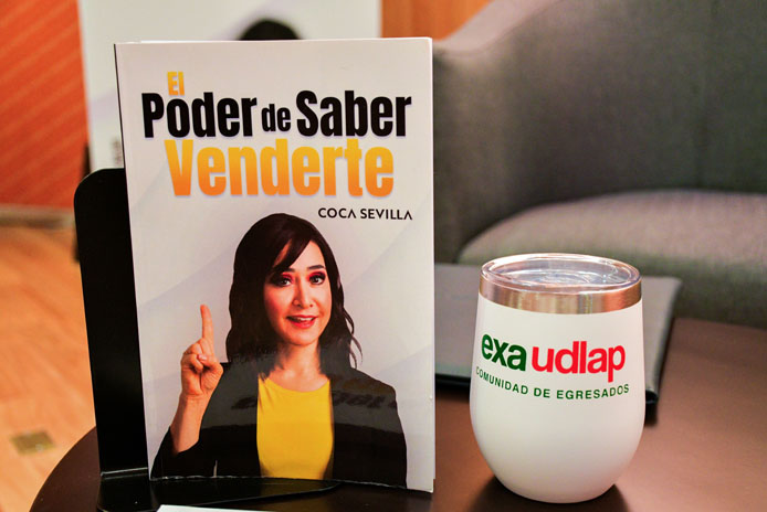 La maestra Sevilla junto a José Carlos López Estrada, egresado de la Licenciatura en Ciencias de la Comunicación, se reunieron con la comunidad UDLAP e invitados especiales en el Auditorio de Ciencias de la Salud, en una charla que fue destejiendo algunos detalles sobre este texto; además, añadió algunas reflexiones y ejercicios para que los asistentes comprendieran la importancia de saber venderse, pues «los reclutadores no piden sólo experiencia, sino tener buena imagen, visibilidad y facilidad de palabra, entre otras cosas», explicó Coca Sevilla.