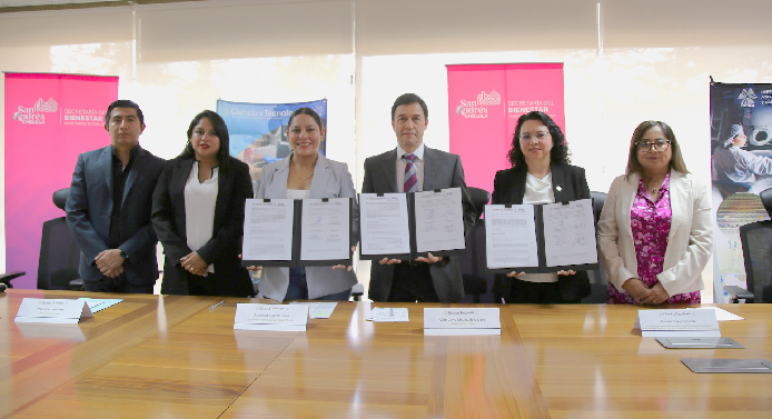 Después de las palabras de la secretaria del Bienestar de San Andrés Cholula, las autoridades firmaron el convenio de colaboración.