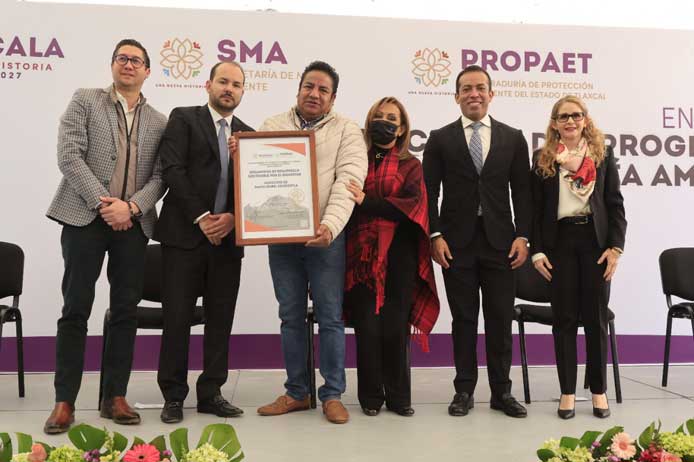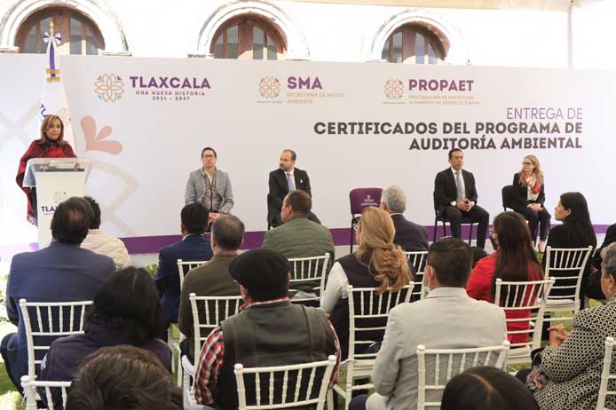 La titular del Ejecutivo local, Lorena Cuéllar Cisneros entregó a entes del ámbito público y privado, 17 certificados del programa de Auditoría Ambiental que lleva a cabo la Procuraduría de Protección al Ambiente del Estado de Tlaxcala (Propaet).