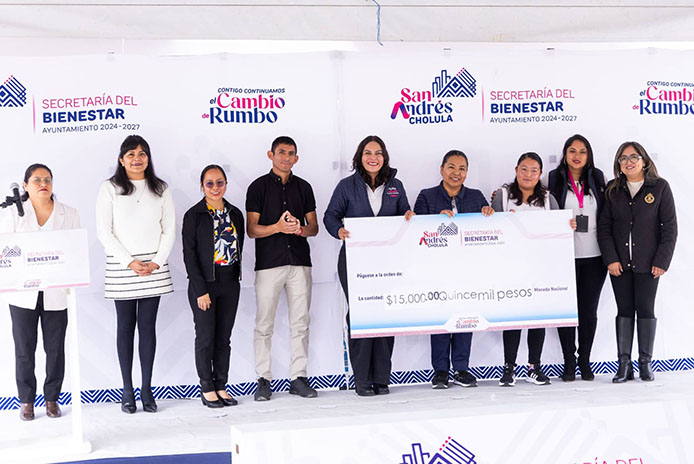 San Andrés Cholula, Puebla. – Con el objetivo de incentivar el desarrollo académico de las y los estudiantes del municipio, la presidenta municipal, Lupita Cuautle realizó la entrega de apoyos económicos a instituciones educativas del municipio.