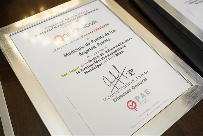 El municipio de Puebla obtuvo el 100% de cumplimiento en el Índice Integral de Evaluación de Programas Municipales 2025 y es reconocido por incorporar indicadores de igualdad de género en la evaluación de programas presupuestarios