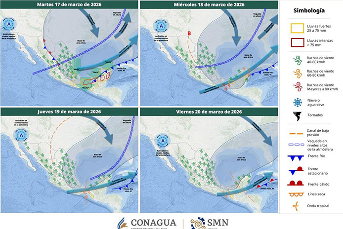 Ante estas condiciones, se estima que la temperatura máxima oscile entre 22 y 25 °C, mientras que la mínima podría ubicarse entre 8 y 10 °C, principalmente durante la madrugada y primeras horas del día, con presencia de lluvias y rachas de viento. Para dar seguimiento a estos fenómenos, el Gobierno de la Ciudad mantiene monitoreo permanente a través del Departamento de Alertamiento e Información de la Dirección de Gestión de Riesgos en materia de Protección Civil de la Secretaría de Gestión y Desarrollo Urbano, con base en la información emitida por la Comisión Nacional del Agua y el Servicio Meteorológico Nacional, debido a que las precipitaciones podrían intensificarse en las próximas horas.