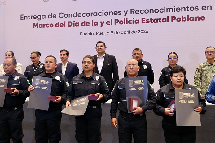 En el marco del Día de la y el Policía Estatal Poblano, el Gobierno del Estado distinguió a elementos con 30, 35 y 40 años de servicio, en reconocimiento a su vocación, disciplina y lealtad. El titular del Ejecutivo señaló que el trabajo policial es fundamental para garantizar la convivencia armónica, el respeto a la ley y la tranquilidad social en todo el territorio poblano.