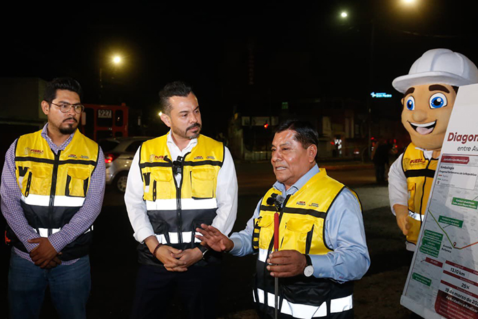 El coordinador de Gabinete, José Luis García Parra, supervisó las obras en la Diagonal Defensores que se llevan a cabo de 8 de la noche a 5 de la mañana.