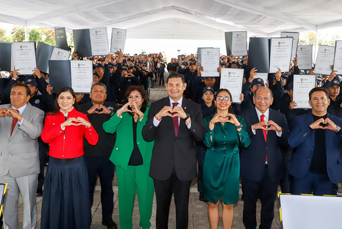 Al asistir a la ceremonia de graduación de 122 Cadetes del Curso de Formación Inicial para Policía Estatal de Proximidad de la Universidad de las Ciencias Policiales y de la Seguridad (UCIPS), el gobernador Alejandro Armenta señaló que para su gobierno cuidar a quienes protegen a las familias es una misión. «Nosotros cuidamos a sus familias para que ustedes protejan a los poblanos, es el compromiso. No están solos», aseguró el mandatario, al tiempo de reconocer que se formaron con valores que permiten proximidad con la población.