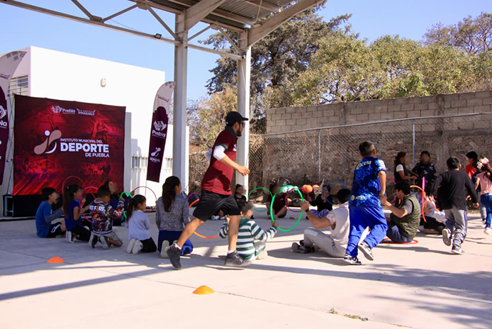 Durante la jornada realizada en San Francisco Totimehuacan, las y los participantes realizaron diversas dinámicas enfocadas en mejorar habilidades como la coordinación, la agilidad física y mental, el equilibrio, la ubicación espacial y el trabajo en equipo, todo a través de ejercicios recreativos que fomentan la convivencia y el movimiento.