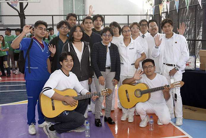 Asimismo, hizo entrega simbólica de un total de 120 equipos de cómputo, 25 guitarras y 24 balones de básquetbol que servirán para equipar a las facultades de Medicina, Enfermería y Estomatología, además de facilitar las actividades deportivas, recreativas y culturales como las que realiza la Rondalla de la Salud.