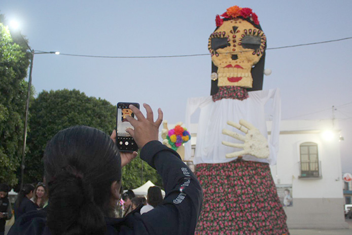 De igual manera, se inauguró la primera “Catrina Monumental” en Amozoc, una pieza que resalta el arte, la cultura y las raíces del municipio, elaborada por el grupo de artesanos “Cuna de Artesanos”, a quienes el Gobierno Municipal apoyó con los materiales y reconoció por su creatividad, talento y compromiso con la preservación de las tradiciones.