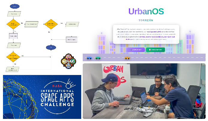 Respecto a esto, la estudiante, Martha Patricia Heredia Andrade explicó que UrbanOS es «una página web que muestra datos reales de la NASA y del INEGI en un mapa interactivo de Torreón, y que además ofrece recomendaciones para que los planeadores urbanos puedan crear mejores estrategias». Asimismo, detalló que la plataforma fue desarrollada con Next.js e integra diversas APIs de fuentes confiables, utiliza librerías open source y fue publicada en línea para su consulta abierta; también incorpora un chatbot que brinda recomendaciones específicas por zona, siempre basadas en datos oficiales.