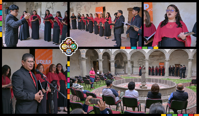 La jornada continuó con el concierto México, fe y fiesta, interpretado por el Grupo Coral Capilla Santa Cecilia, ensamble fundado en 1988 con el objetivo de rescatar, cultivar y difundir la música litúrgica. Bajo la dirección de los maestros Miguel Guzmán Moreno y Maximiliano López Báez, estudiante e integrante de los Equipos Representativos Culturales de la UDLAP, el programa ofreció un recorrido musical que abarcó desde el canto medieval cristiano hasta expresiones del folclor mexicano y latinoamericano.