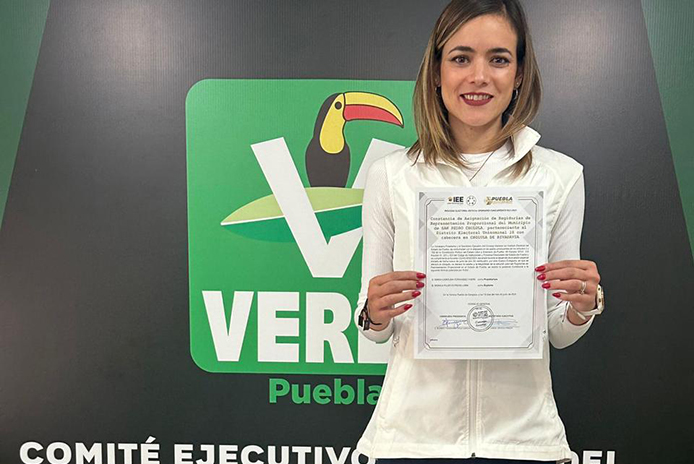 Carolina Fernandez Fábre recibió la constancia como regidora de San Pedro Cholula por parte del Partido Verde, acompañada por el coordinador municipal y su equipo de trabajo, la líder política se mostró emocionada y agradecida por la confianza depositada en ella por la población.