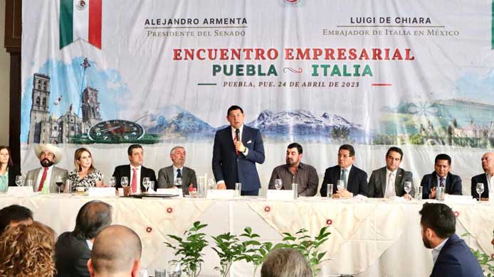 El presidente de la Mesa Directiva del Senado, Alejandro Armenta, en compañía del embajador de Italia en México, Luigi De Chiara, se reunió con empresarios italianos establecidos en Puebla y con representantes del Consejo Coordinador Empresarial local y hombres de negocios, con el objetivo de fortalecer las relaciones comerciales y diplomáticas entre ambas naciones, así como escuchar los puntos de vista.
