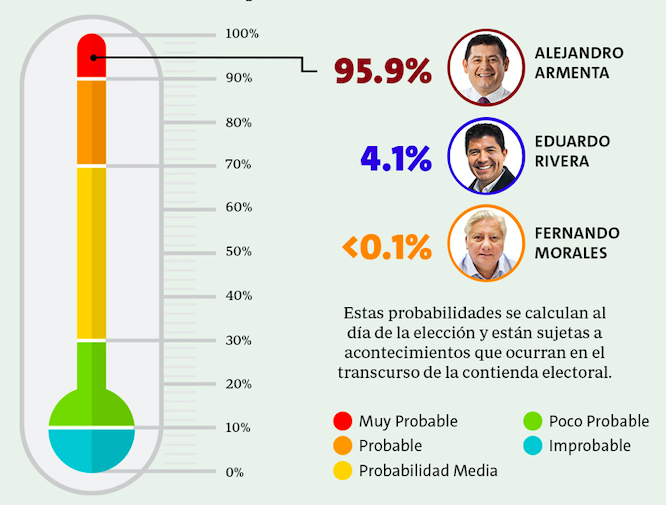 Expansión Política presentó su “Encuesta de encuestas” donde al analizar más de 100 ejercicios y distintos escenarios, en los que el resultado mostró una probabilidad de 95.9% de que Alejandro Armenta, candidato a la gubernatura de Puebla por la coalición “Sigamos Haciendo Historia” gane la elección el próximo 2 de junio.