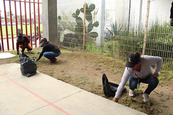 Durante esta jornada, los trabajos se enfocaron en la zona de la cancha de cachibol y su acceso, donde se realizaron labores de barrido, pintura de la reja y del acceso, así como el retiro de maleza en los alrededores, mejorando significativamente las condiciones del espacio.