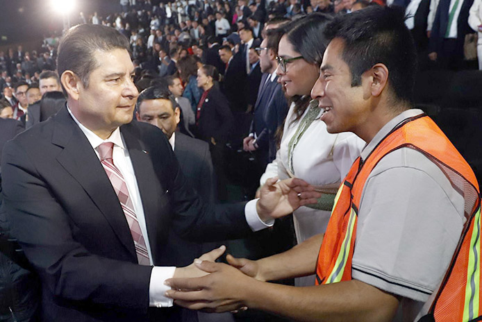 En el marco de los 100 primeros días del gobierno de Alejandro Armenta, el titular del ejecutivo señaló que bajo los ideales del humanismo mexicano y con los principios de seguridad, justicia y riqueza comunitaria, en la entidad se implementaron las Faenas Comunitarias, por ello resaltó la presencia del jóven en el Auditorio de la Reforma.