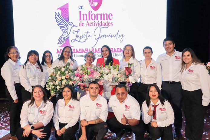 26 de noviembre, 2025. San Pedro Cholula, Pue. – Con el compromiso de informar a las y los cholultecas sobre los programas y apoyos impulsados durante el último año, la presidenta honoraria del DIF Municipal, Mtra. Lupita Fernández, rindió su primer informe de labores al frente de la institución encargada del desarrollo y bienestar de las familias.