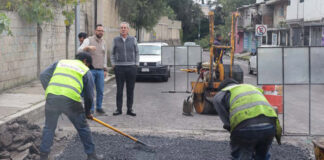Supervisa Pepe Chedraui trabajos de bacheo en la colonia San José...