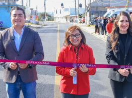 Gobernadora entrega obras de rehabilitación de carretera de acceso a Amaxac