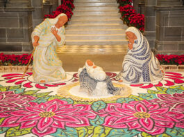 Nacimiento de talavera y alfombra artística transforman el Palacio Municipal