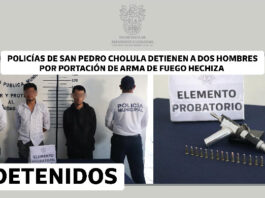 Policías de San Pedro Cholula detienen a dos hombres por portación de arma de fuego hechiza