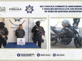 SSC Cholula combate el narcomenudeo y asegura motocicleta con reporte de robo en Santiago Momoxpan