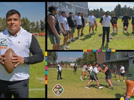 La línea ofensiva de los Aztecas de Futbol Americano de la UDLAP tiene nuevo coach