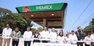 El coordinador de gabinete, José Luis García Parra, y el director de Petróleos Mexicanos (PEMEX), Víctor Rodríguez Padilla inauguraron la primera gasolinera de...