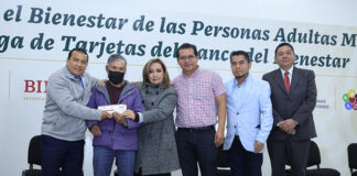Entrega Lorena Cuéllar tarjetas de pensión a adultos mayores
