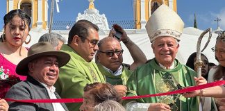 Con la presencia de Monseñor Víctor Sánchez Espinosa y Severiano de la Rosa presidente de Amozoc, se realiza el corte de listón para...