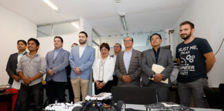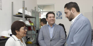 Durante una visita a los laboratorios de la FCE, en compañía del asesor en Tecnología, Alejandro Armenta Arrellano.