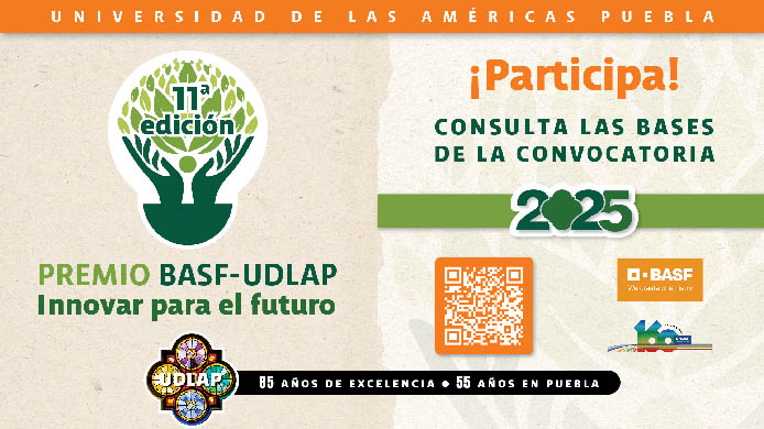 La Universidad de las Américas Puebla (UDLAP) y la empresa BASF, te invitan a participar en la 11ª edición del Premio «Innovar para el Futuro»; convocatoria que cierra la recepción de proyectos el próximo 30 de junio de 2025 y que tiene como propósito reconocer la innovación y la creatividad en el planteamiento de soluciones, por parte de estudiantes de licenciatura y posgrado en diversas áreas de aplicación del conocimiento.